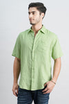 Lt Green Half Sleeve 100% Linen Shirt